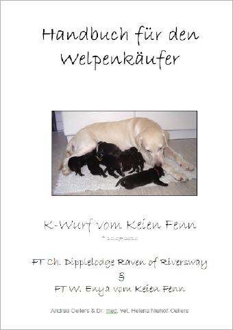 Meine Welpenkäufer unterstütze ich unter anderem durch Mitgabe einer Welpenmappe mit Erziehungs- und Ausbildungstipps und durch eine von mir geleitete kostenlose Welpenspielgruppe mit Erziehungsübungen, später durch gelegentliches Junghunde- und Einzeltraining.
